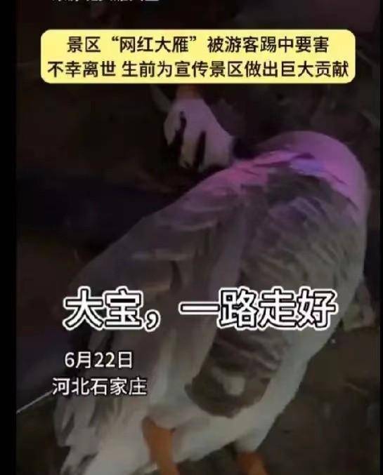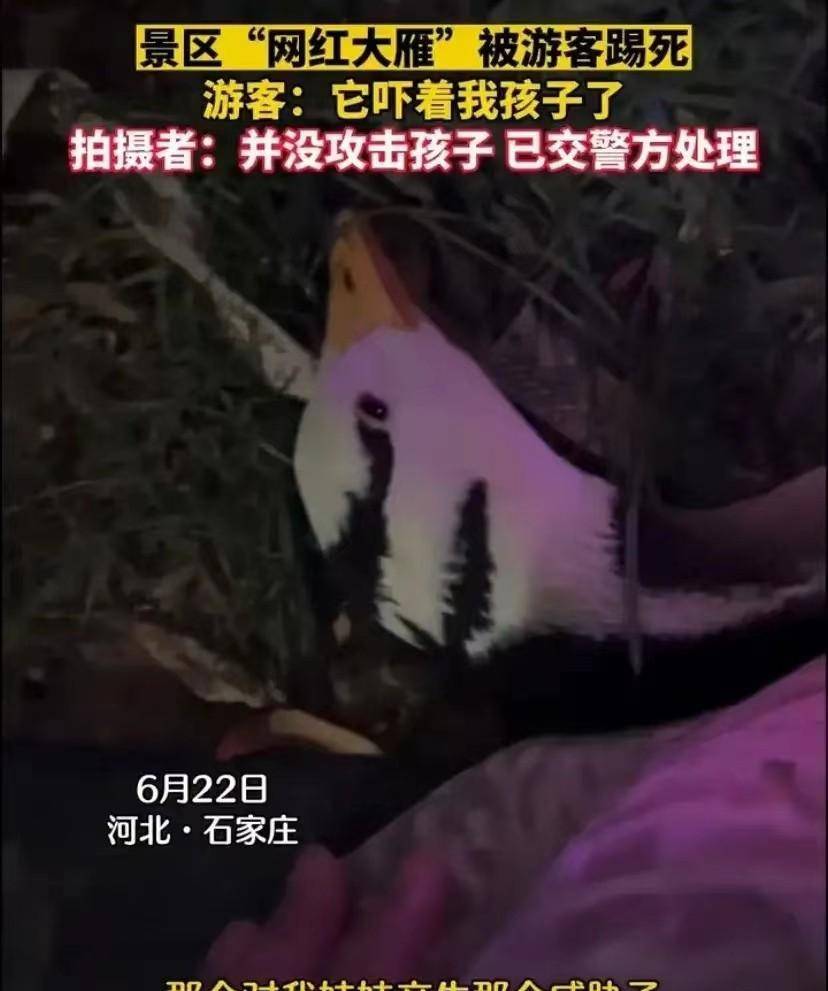 近日,一则关于网红大雁的新闻在社交媒体上疯传。这只大雁平日里与游客亲近,给石家庄的一处公园带来了无数人气,被赞誉为“网红大雁”。然而,就在6月22日,这只备受喜爱的大雁却被一名游客踢死,引发了广泛的关注和争议。