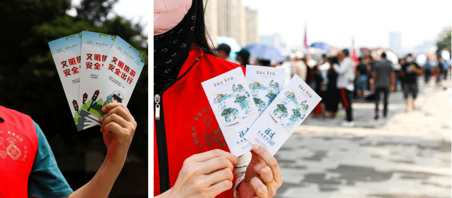在福建省文化和旅游厅、中共福建省委文明办的联合指导下,福建省杂技团在现场积极开展“文明旅游 安全出行”志愿宣传服务活动,通过发放文明旅游宣传手册、礼品等方式向游客民讲解文明旅游及安全出行基本知识,号召大家旅游过程中要遵守文明旅游规范,维护环境卫生、遵守公共秩序,自觉塑造文明形象,争当文明的传播者,让现场游客们在观看龙舟比赛的同时感受文明旅游的重要性。