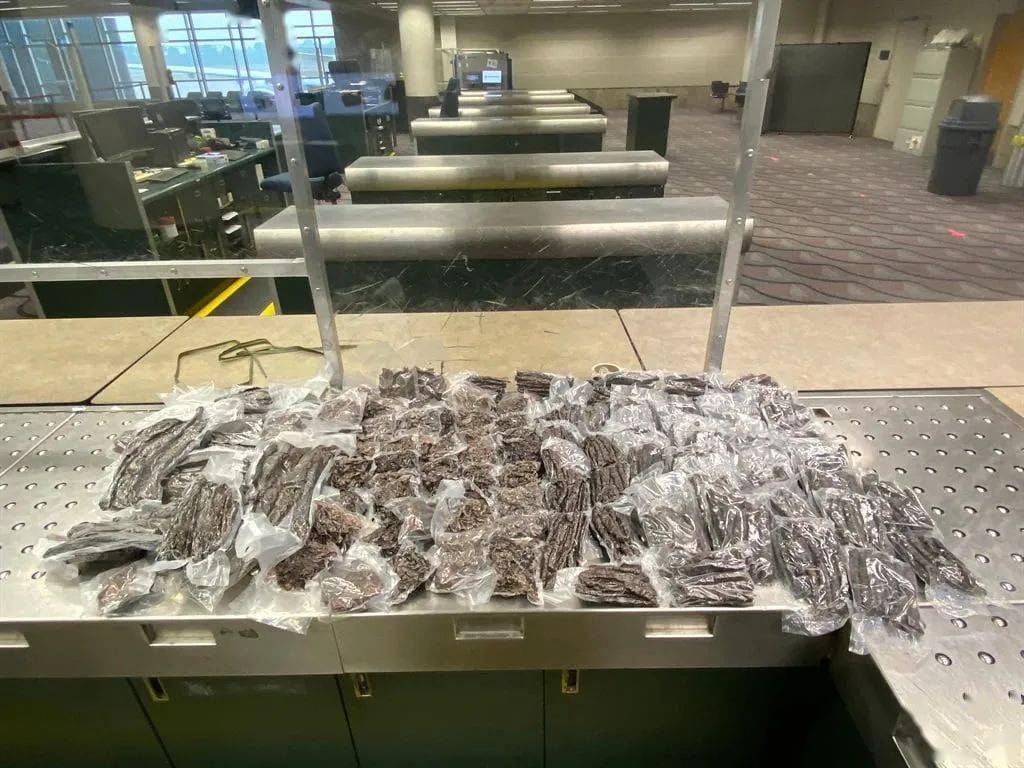 美国海关以及边境部门表示,一名南非游客试图将大量的牛肉干带进美国境内,结果他的这一行为没能成功。