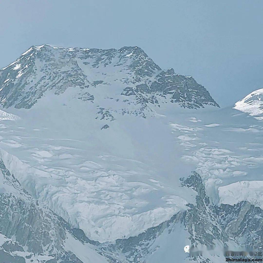 南迦帕尔巴特峰顶峰的景致:右则为山峰8,042米高度的南肩;下撤至最后一处宿营地点,这里距离顶峰仅800米