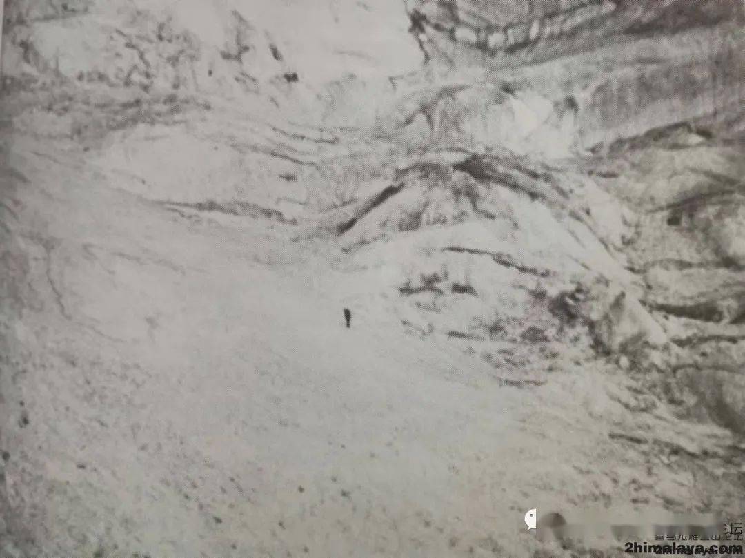我的睡眠极其糟糕,直至早晨七时才离开帐篷。天空乌云密布,但是我能够看到顶峰。如果雪层和冰面坚硬,我可以在两个小时内到达那里,最多三个小时。但是此刻我却在无尽的柔软雪层间拖动双脚,这里如同流沙一般难以前行。
