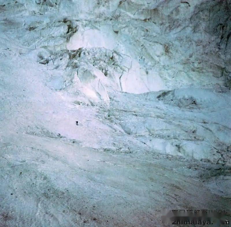 Ursula Grether用望远镜拍摄Messner在下端区域攀登的照片