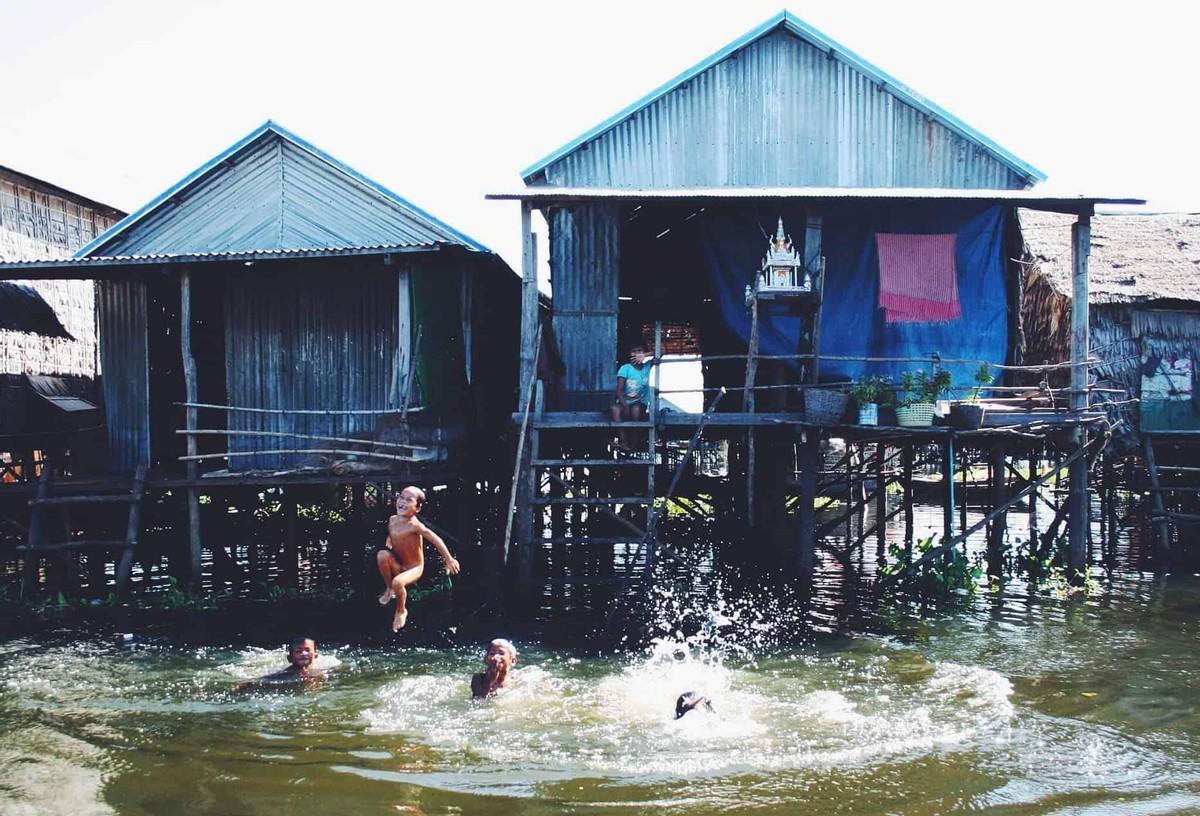 生活在“浮村”的人基本上从小就要学会与水打交道,这不仅是生活需要,有时候也是保命技能,因为洞里萨湖上偶尔刮起的大风有可能掀翻船只。
