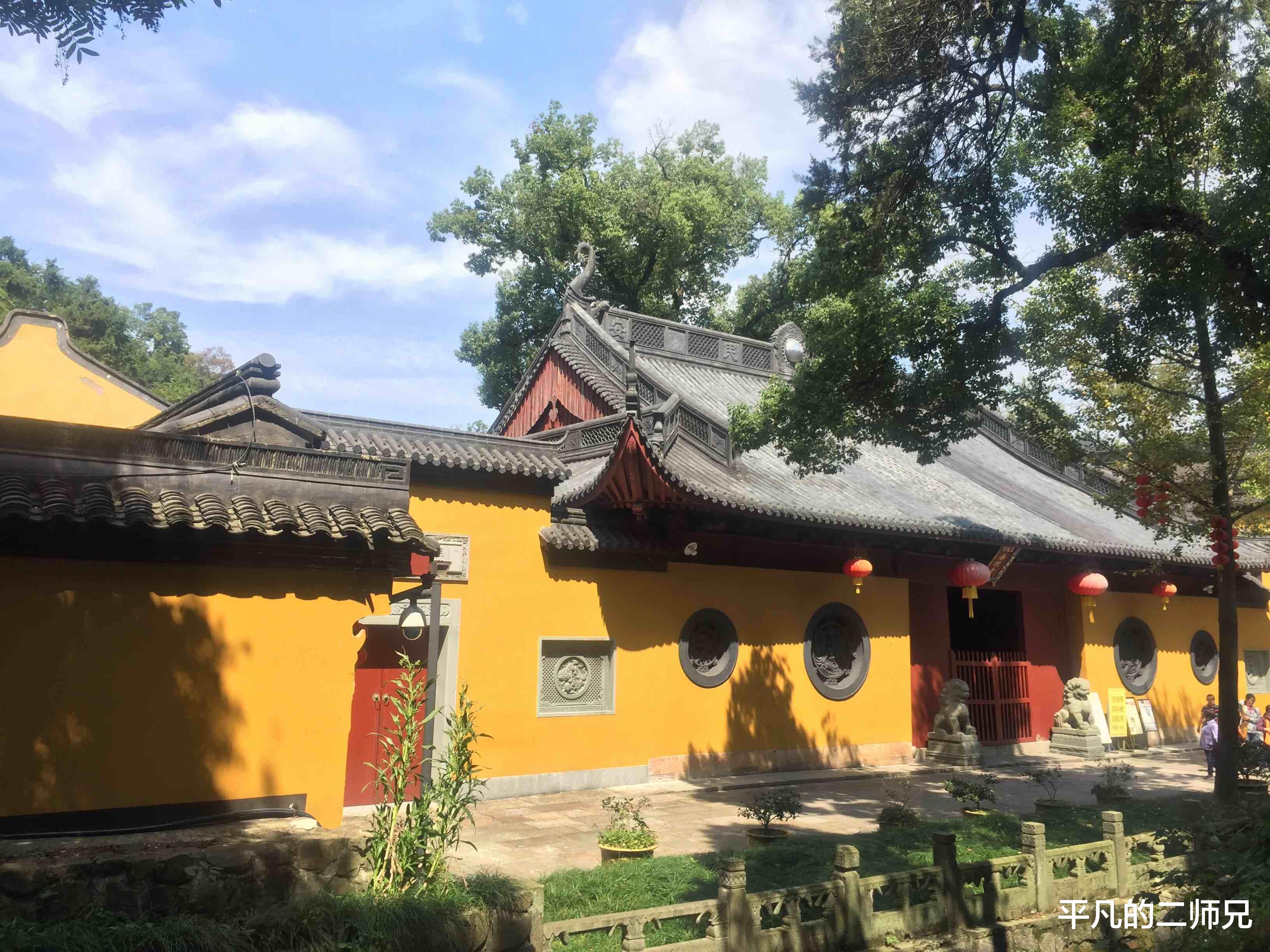 与北方寺庙的红墙金瓦不同,灵隐寺的色彩风格是黄墙黑瓦。鲜艳色彩的对比使人感觉明亮、清晰。也许正是因为这个原因,灵隐寺才逐渐成为杭州的一个地方。名片风格的红色签到地点。