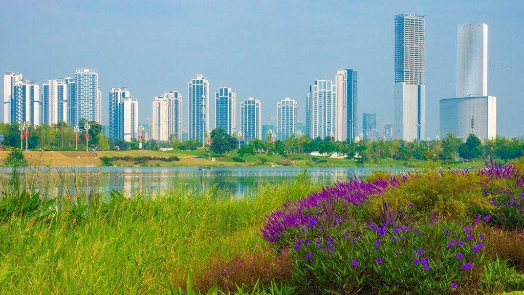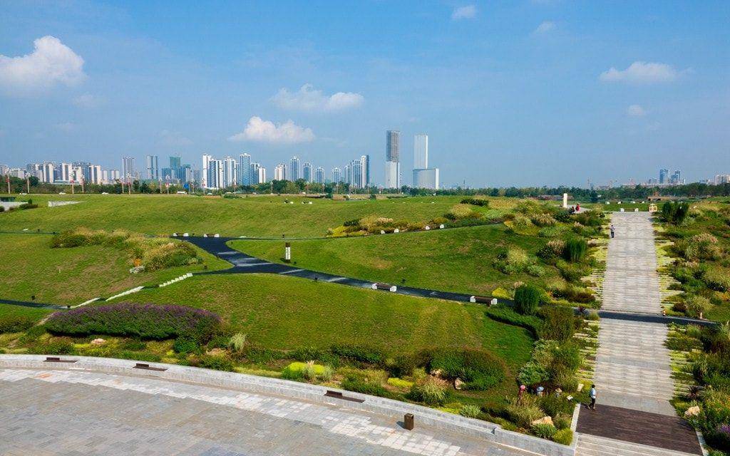 天府公园,这个名字最直接的公园,是成都天府新区主城区的地标性公园。位于天府大道两侧,武汉路以南,紧邻我们西国际会展城。占地约3450亩。整个公园的建设非常对称,最宽处1.5公里,最窄处900米,南北长度约2公里。附近有很多高楼正在建设中,很多知名开发商也在附近积极建设。