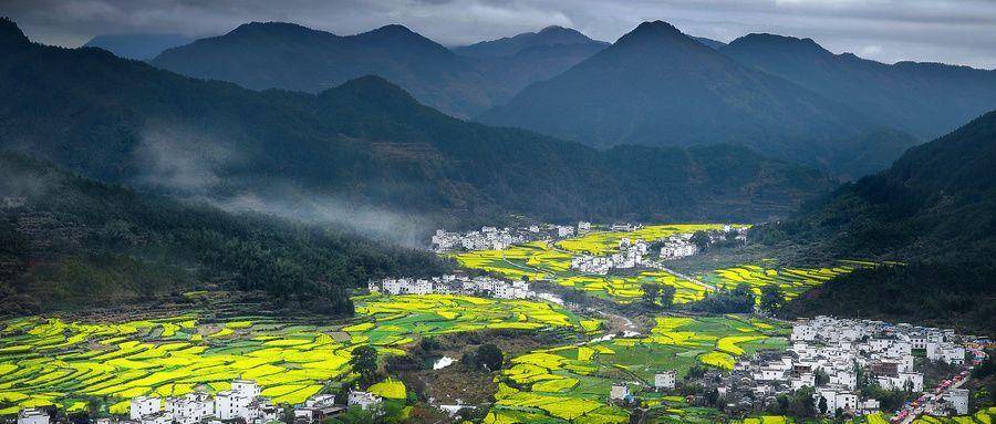 江西省婺源县被誉为“我们最美的村庄”。春天的婺源,是一片花的海洋,粉色的桃花、白色的梨花、金灿灿的油菜花层层叠叠,与白墙黛瓦的村屋相得益彰,堪称自然美景。图像卷。在婺源,观赏油菜花的最佳地点是黄岭和江岭。海拔10000米的油菜田作为整个婺源景观的中心景点,是从山顶一直延伸到山下的可眺望山景的梯田。有“我国四大花海之一”之誉。