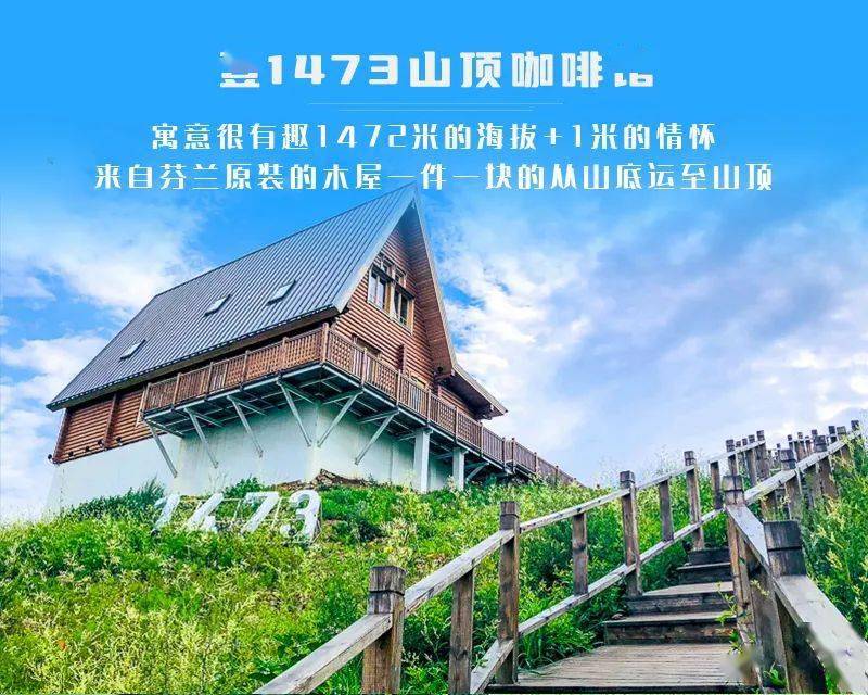 这里是京城最高的咖啡馆1473,寓意很有趣1472米的海拔+1米的情怀。来自芬兰原装的木屋一件一块的从山底运至山顶,整个建筑极具北欧特色,在山谷中打眼又好看。