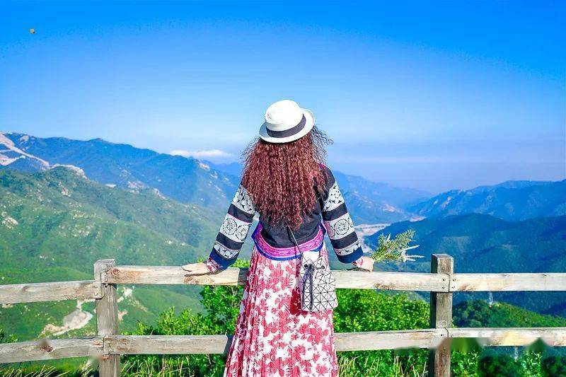 到山顶没有任何捷径可以走,在森林中慢慢的攀爬,穿行在幽静的森林之间,山间小路有些原生态,虽然爬的气喘吁吁,但登高上顶,登高望远,绝对的不虚此行。海坨山谷的天气好到不P图,远处的山峰层峦叠嶂,就连盘山路也是眼睛所及,看的真真切切。