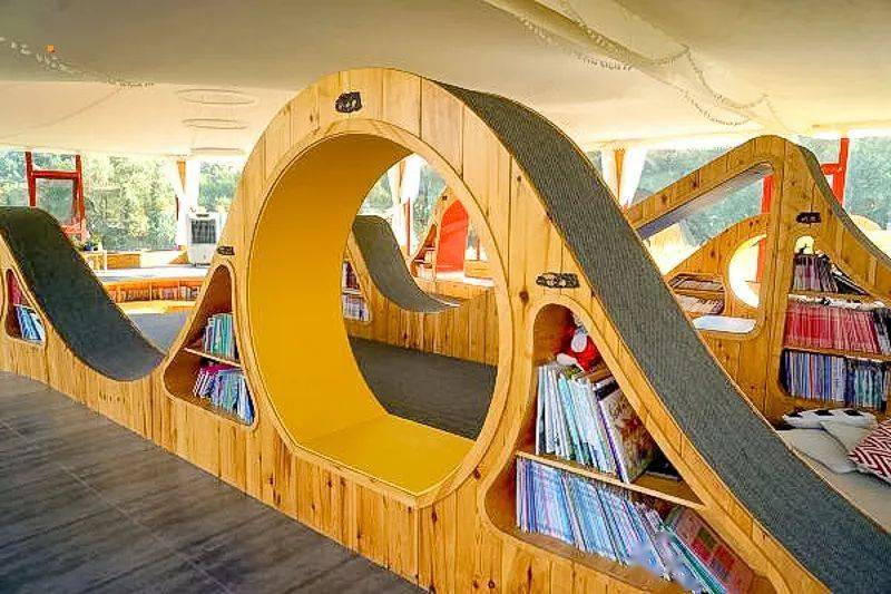 作为主题公园,这个专门为适龄小朋友们准备的图书馆,真心是用心的福利。300平米的宽敞面积,数千本图册绘本适合各个年龄段的小朋友来进行借阅,喜欢读书的孩子们可以进入其中,进行的享受书海。里面自由的书架结构和软软晒着太阳的沙发榻,小朋友们可以用自己最舒服最放松的方式读书,这里不让大人进去,这里是小朋友们的专属地方。