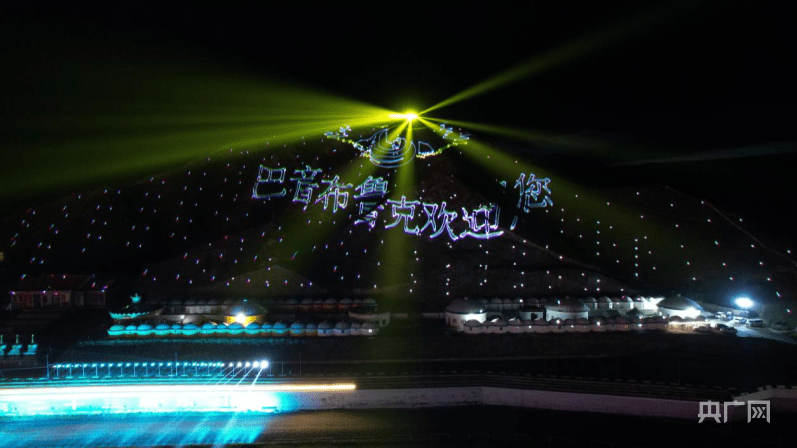 与此同时,灯光秀和烟花秀也在现场同步上演,绚丽的烟花从赛马场中央直升上空,星光四散,绽放在夜空中,瞬时将天空渲染成流光溢彩的画卷。3D投影和LED特效照射出“巴音布鲁克欢迎您”的字样投射在塔格楞山上空,与烟花秀交相呼应,光影技术与高山草原相结合,碰撞出了不一样的精彩画面。
