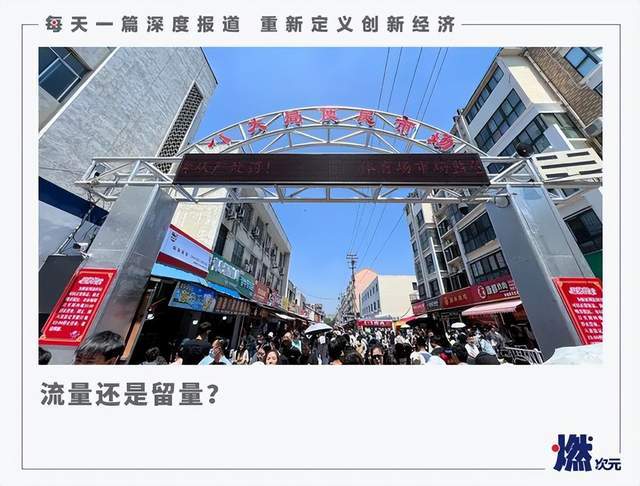 如果说周村古商城的商业化尚且情有可原,那八大局便民市场的商业化程度则让人瞠目结舌。“五一”假期,淄博八大局不仅成功登上了全国景区热榜的第一名,还凭借五一当日高达19万人的客流量轻松碾压了许多老牌5A级旅游景区。
