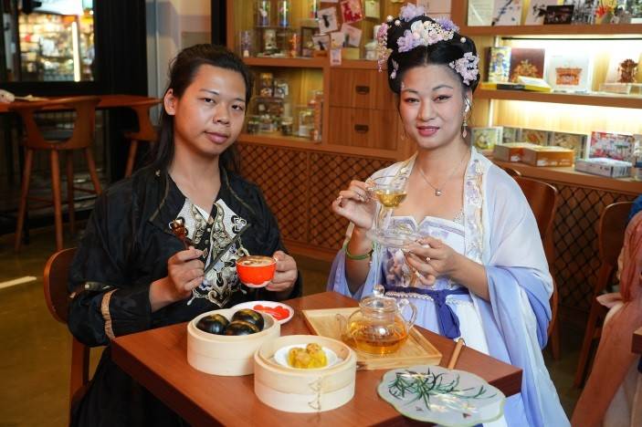 创活MM2 Café为推广中华文化,日前特别邀请了「只此青绿中国历史及汉服文化社」多位汉服爱好者隆重打扮到店品茗、饮咖啡、尝尽中西美食。