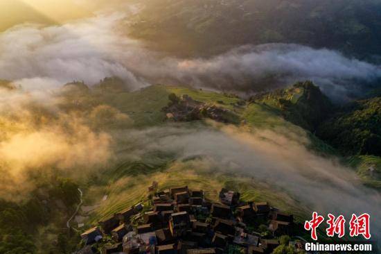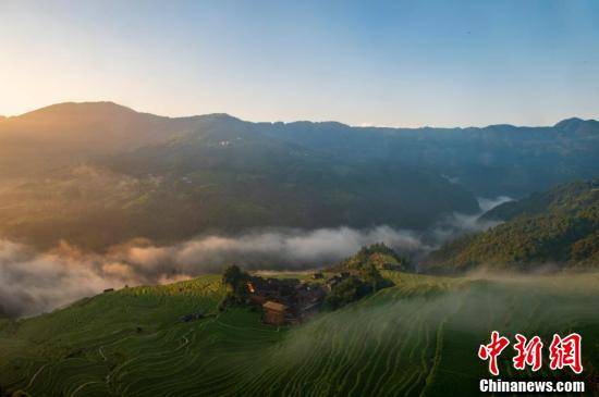 山峦、村庄、梯田在云海中若隐若现。吴德军 摄