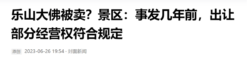 公开报道显示,封面新闻于6月26日晚19:54发布了题为《乐山大佛被卖?景区:事发几年前,出让部分经营权符合规定》的报道。