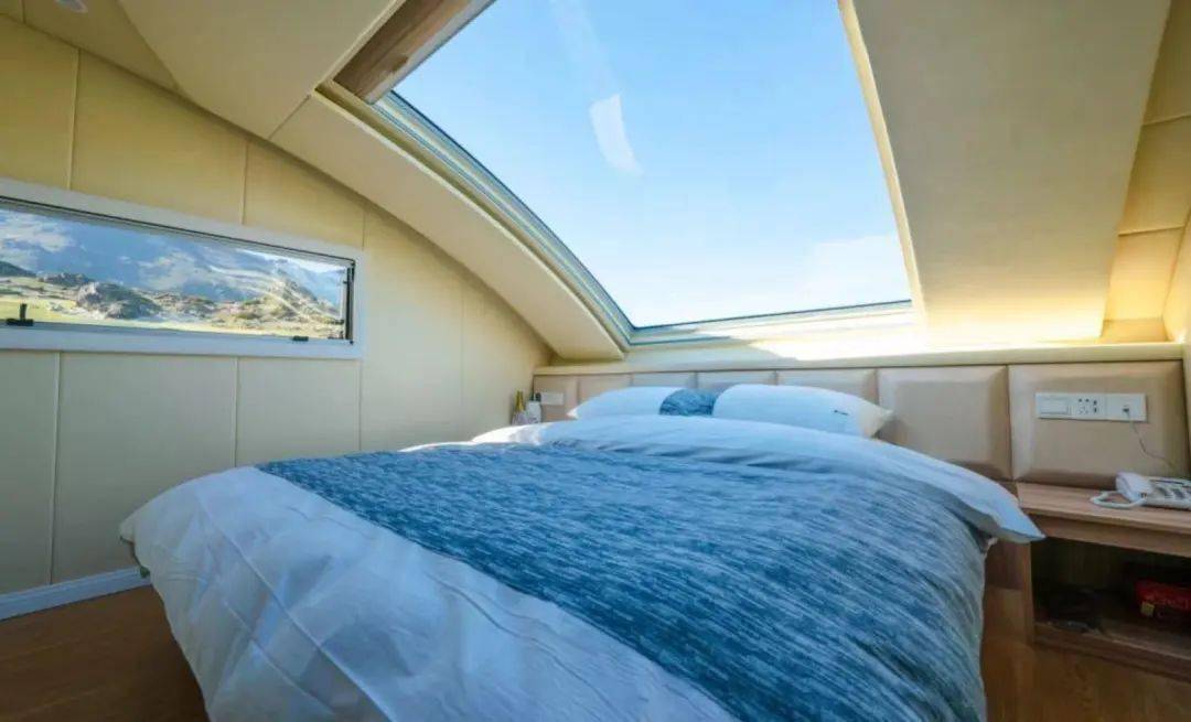 野奢帐篷位于流星花园片区,房间布置浪漫、温馨,顶部星空璀璨,是与爱人相会的首选之地。