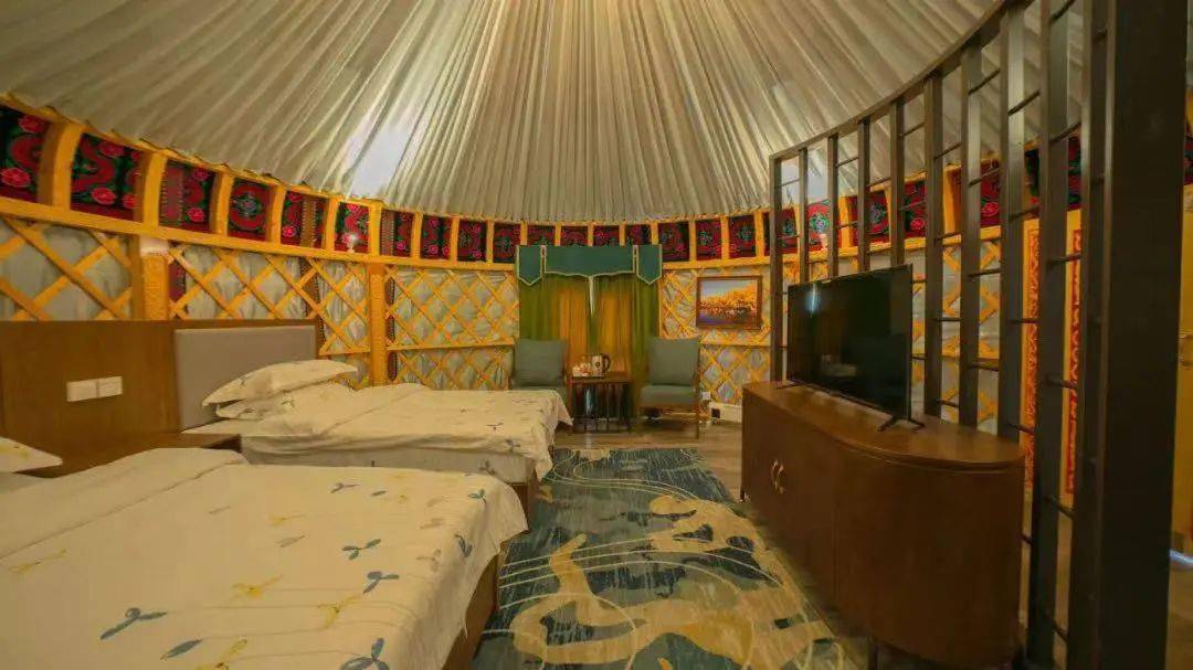 豪华毡房采用哈萨克民族传统毡房的造型,不同风格装修,给您提供不同的切身体验。