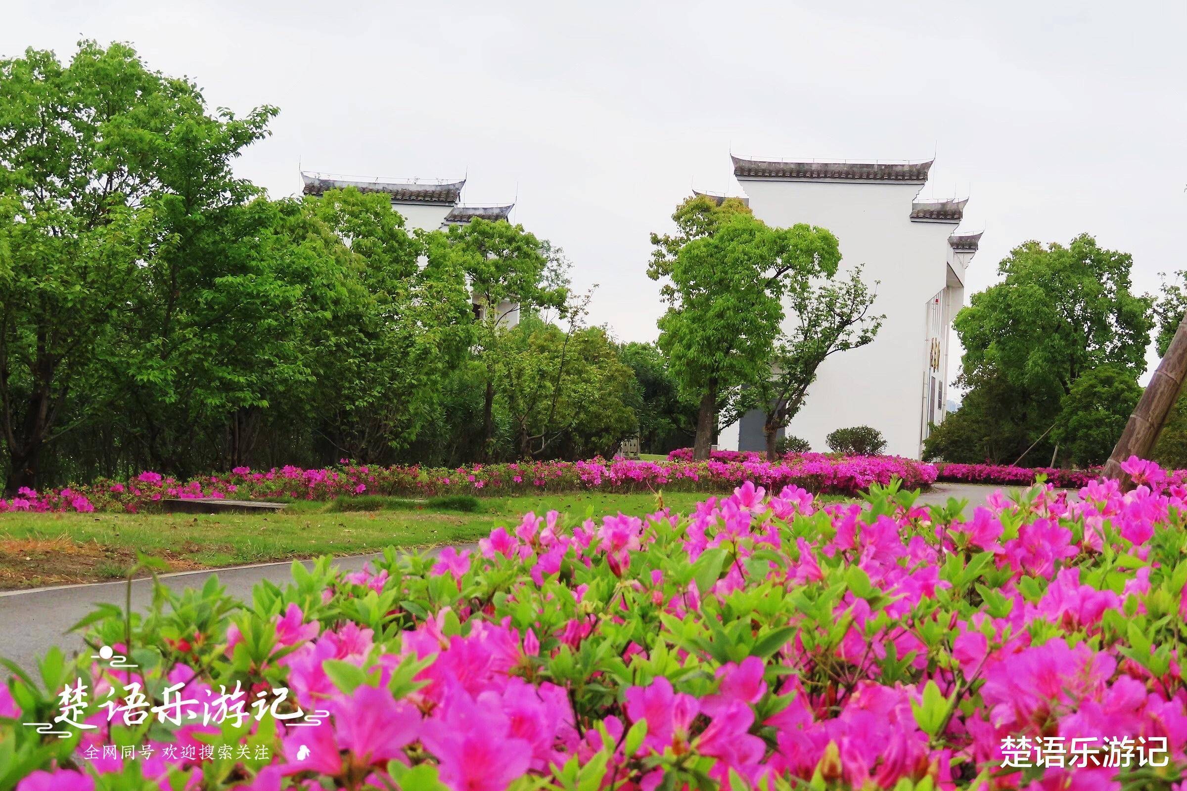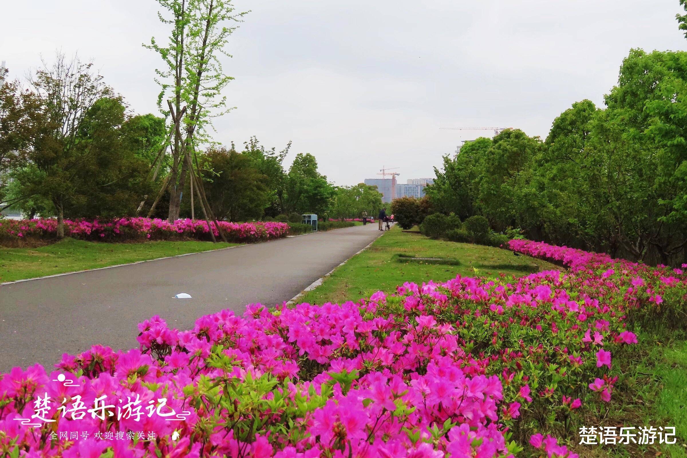 从江岸花海东侧的乌江口门向东,过青林湾大桥就是青林湾河滨公园,里面也有一片杜鹃花海。