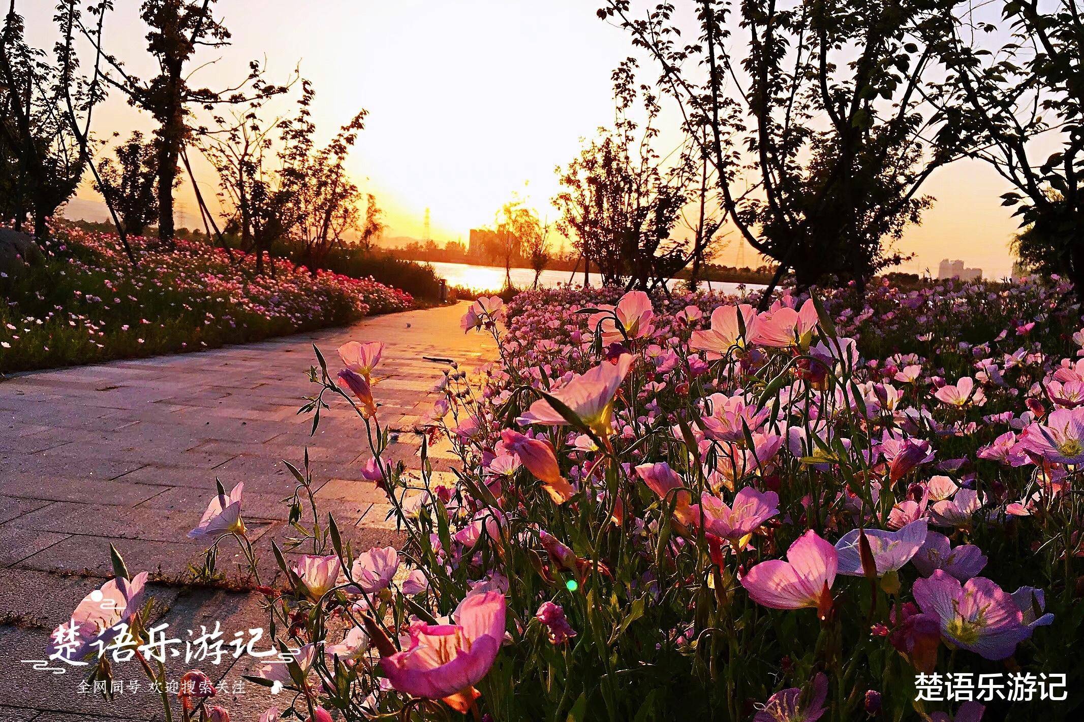除了杜鹃花外,这条堤岸上还种植了许多樱花和雏菊。潇潇草的花瓣大多是粉色和白色的,也像杜鹃花一样盛开,非常美丽。尤其是傍晚天气好的时候,夕阳照在花上,花瓣娇艳欲滴,美丽极了。
