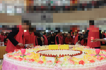 看看这是iyige蛋糕啊,什么样的人能做出比桌子都大的蛋糕呢?你说这需要多少人吃才能吃完呢?