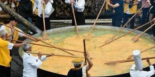 比利时马尔梅迪小镇庆祝传统节日,用6500个鸡蛋制作出直径4米的煎蛋饼,鸡蛋女王孙姐看了表示都饱了~