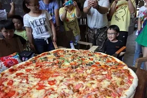 山东滨州,一披萨店制作了一张直径超过1.3米的超大披萨。