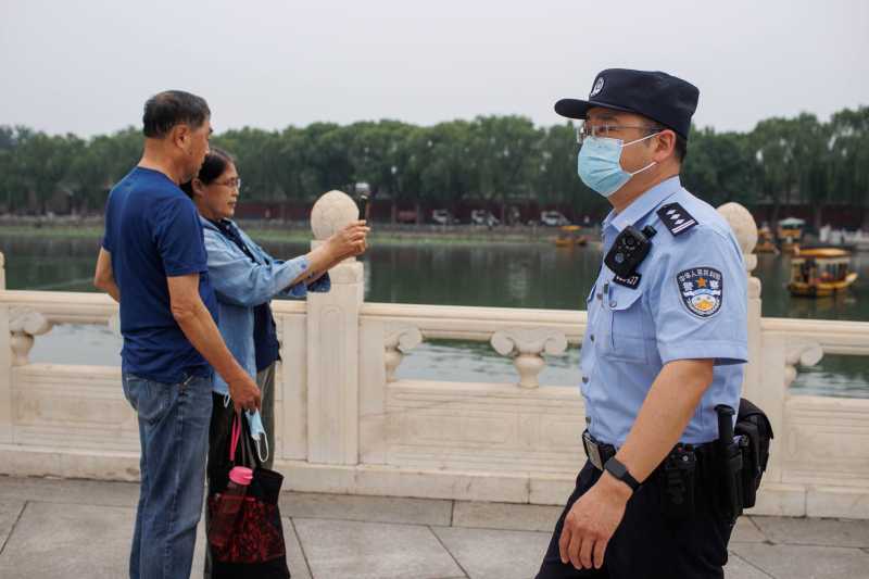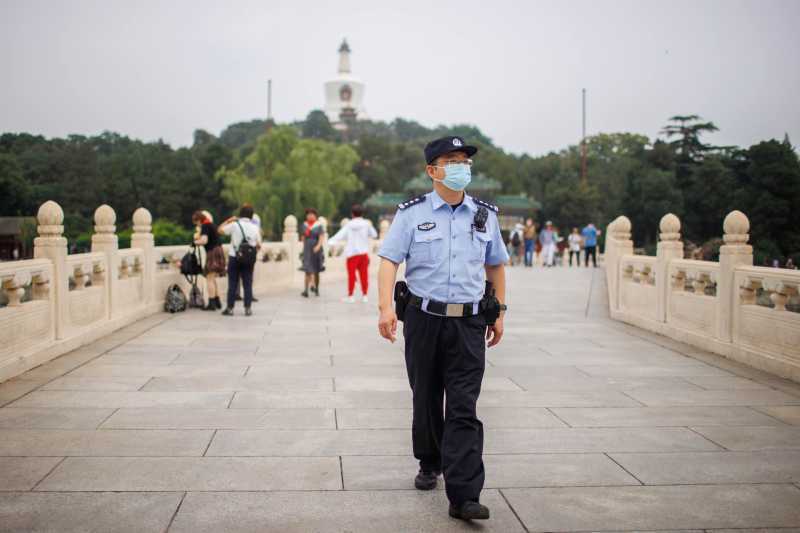 北海公园派出所民警赵树懿正在执勤中。新京报记者 王子诚 摄