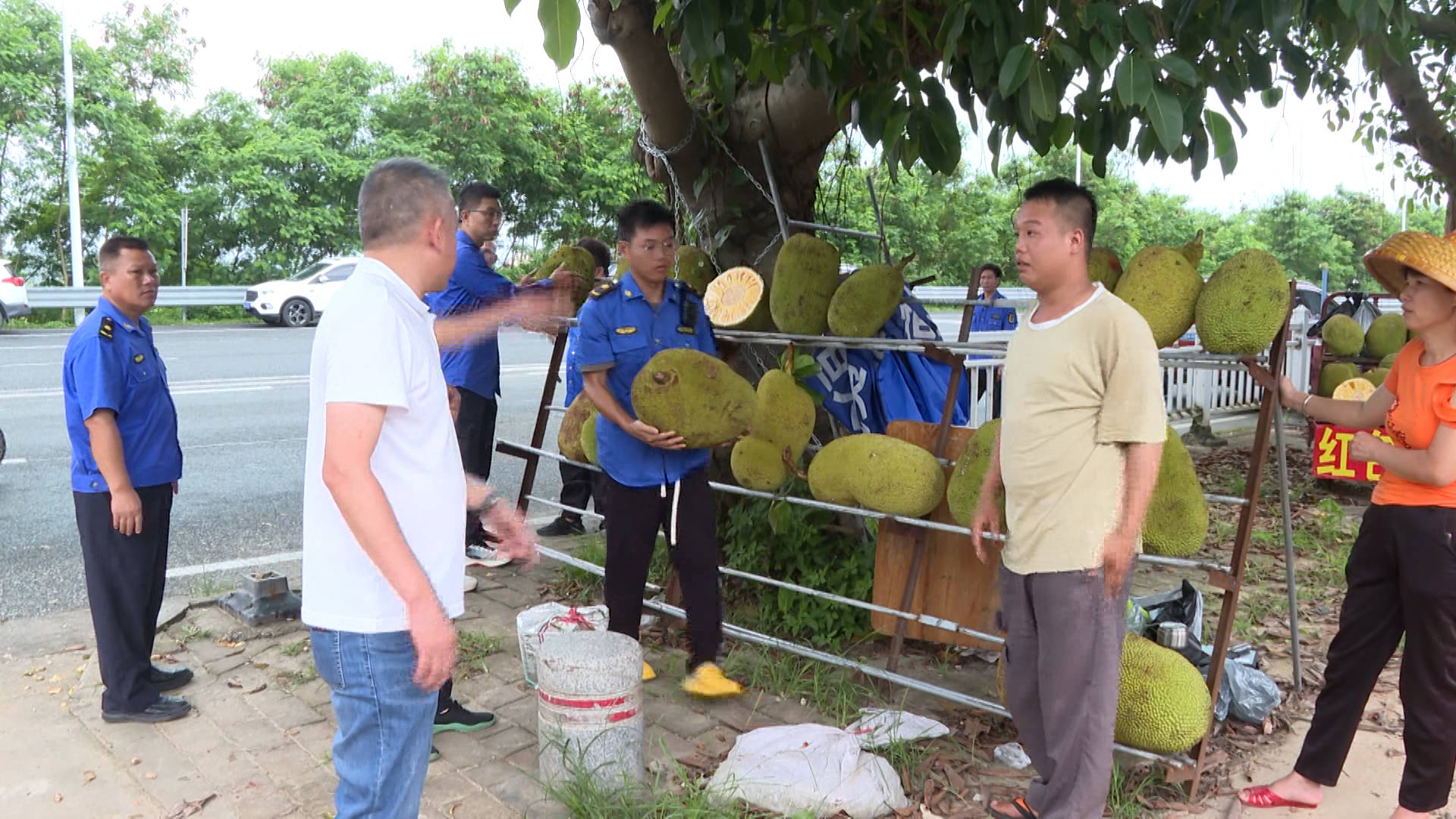 为深入推进正在开展的旅游市场大整治行动,6月23日,海陵区利用节假日时间组织了城管执法、公安、交警、旅游及闸坡镇政府等单位30多名工作人员,对在隧道口销售大树菠萝流动摊贩进行突击检查专项整治行动,重点查办了经营者变换手法进行计量器具作弊的违法行为,检查时发现7台计量秤具均未经检验,也没有秤体铅封完备,其中一台秤具利用4市斤砝码校准显示为10市斤,属于短斤缺两的不合格秤具。此次行动共查扣非法改装三轮车8辆,计量称7把,遮阳伞8把,菠萝蜜208个。
