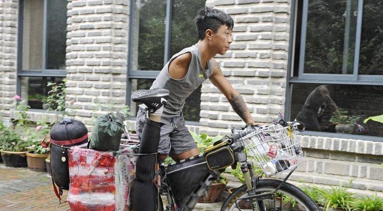 还有一位独臂独腿的二十四岁小伙,他叫郭少宇,今年6月份,他装上了一副假肢,用一辆自行车,一些生活用品,完成了从四川雅安到拉萨2200公里的川藏线起程,就连央视网随后也对他进行了报道。