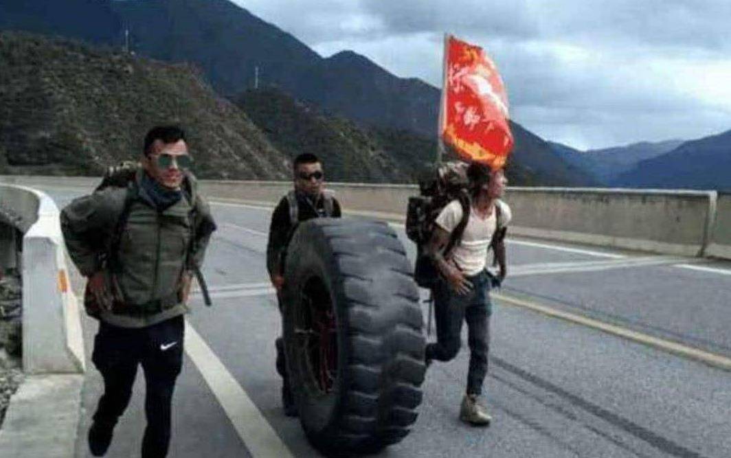 网上出现越来越多推着轮胎行走在川藏线上的视频,不过正常人一眼便能看出哪些人是在作秀,皮肤白嫩,穿着华丽。