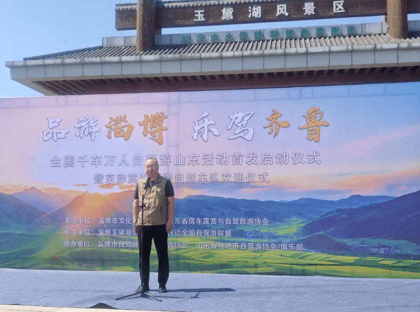 6月6日,风和日丽,繁花似锦,“品游淄博 乐驾齐鲁”全国千车万人自驾游山东活动首发启动仪式暨京津冀晋蒙豫入鲁自驾车队欢迎仪式在淄博玉黛湖景区隆重举行。 本次活动由山东省房车露营与自驾旅游协会、淄博市文化和旅游局主办,淄博市自驾游与房车露营协会、淄博玉黛湖景区、目标行动全国自驾游联盟承办。 淄博市文化和旅游局党组副书记、副局长严旭参加了活动。