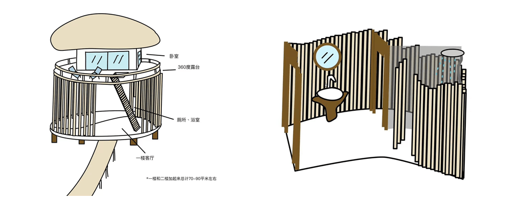 农场占地面积约1万平米,目前已经对外开放,有两间竹屋客房和三定帐篷房间,而小熊居住的主体建筑是用竹子搭建的八角形竹屋,还有一个由集装箱建造的小动物们的居所。整个农场的建造过程都在小熊的平板电脑上,有着平面设计专业背景的她,时隔多年重拾画笔,在平板上描绘着这片土地。