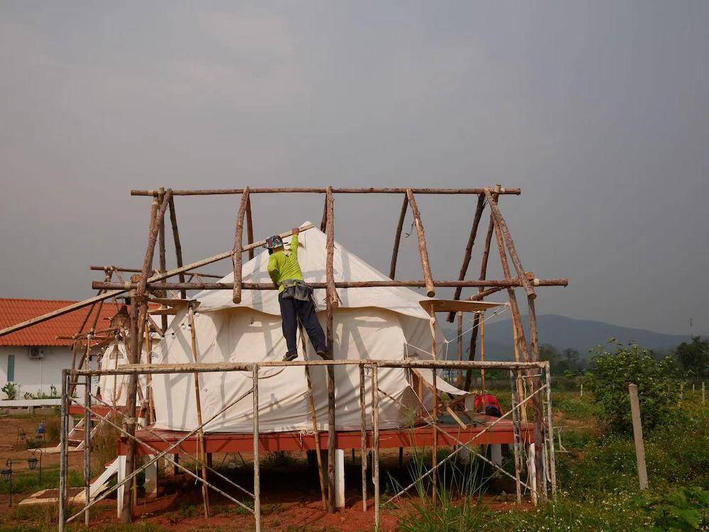 “更多的是气候因素,泰国在雨季的时候,经常会有强暴风雨,这时我们的建筑可能会淹水,因为这块地本来就是一个稻田,地势比较低。帐篷区域下雨的时候会发霉,屋顶的茅草可能会被吹掉。并且雨季也会带来很多的虫害,侵蚀竹子、木头。这些问题不可能永久被解决掉的,就像我们维护自己的身体,每天都要洗脸刷牙,是一样的。只要不去维护,可能身体会走形,牙齿会变黄。身体它也是一个增熵的过程,它会逐渐走向衰败,所以对身体也好,还是说对这个项目也好,我觉得这就是人生的一个规律,无需沮丧,不是所有问题都可以永远被彻底解决的。”对于小熊来说,挑战性也是生活中不可或缺的一个部分,在挑战中学习,成长,也可以让生活变得更加丰盈。