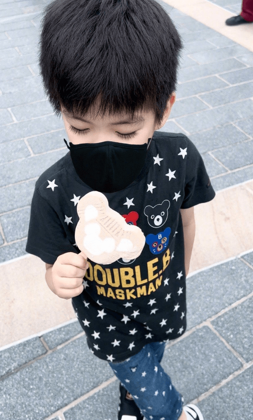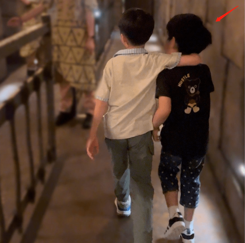 小星星相当活泼,即便已经许久没去迪士尼,依然能够跟小伙伴打成一团,两个小男孩勾着膀子,好似兄弟俩一样。