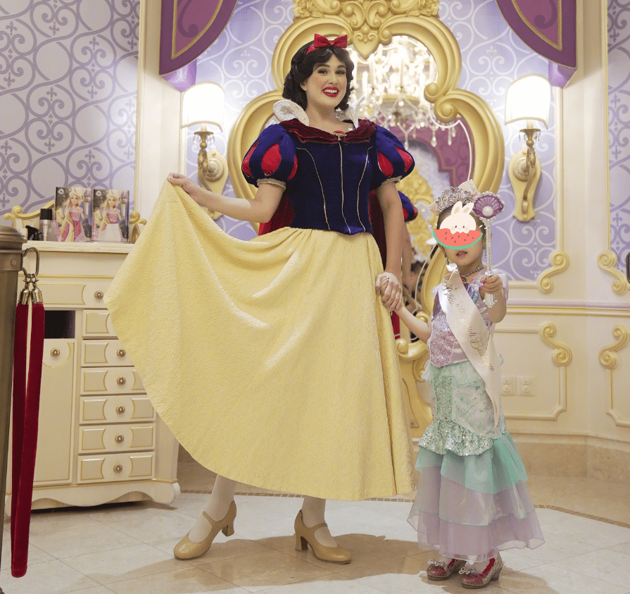 相比之下,颖儿跟女儿小月亮就文静不少,母女俩穿着漂亮的裙子拍摄,小月亮还与自己喜欢的公主合影了,果然是男孩子更爱玩、女孩子更爱美。