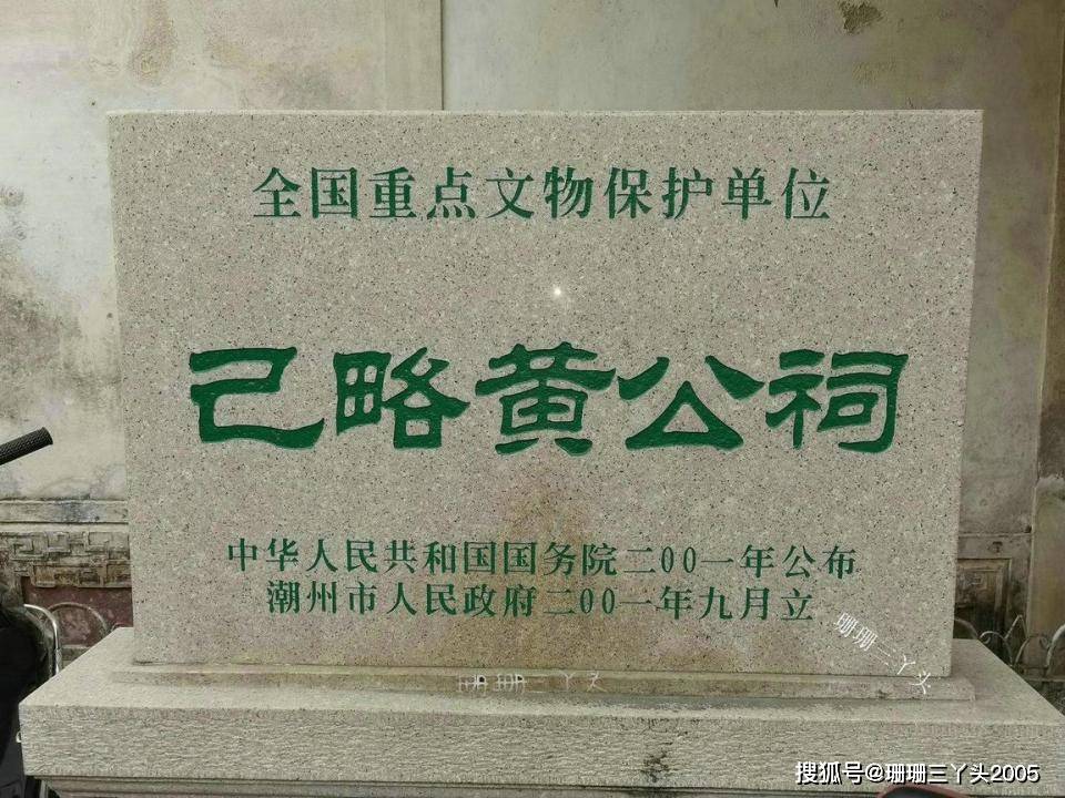 己略黄公祠,在潮州市湘桥区义安路铁巷2号,建于清光绪十三年(1887年),是一座二进院,,首进与后厅之间是天井,两侧有廊轩,后厅有抱厦,形成四厅相向的格局。后厅中槽屋架是“三五木瓜十八块坯”的典型结构。