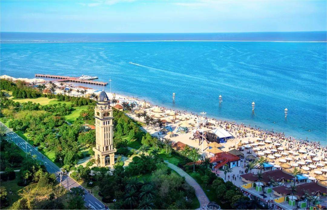 滨江临海的区位条件赋予了景区丰富的江海旅游资源,第一缕曙光、双色海、休闲沙滩形成了景区的核心特色,滨海酒店、九大中心、酒吧街、美食街等设施组成了景区完善的旅游服务配套,各类休闲娱乐活动丰富多彩。