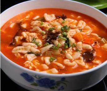 9、将煮好的麻食捞出,倒入配菜中,搅拌均匀即可食用。