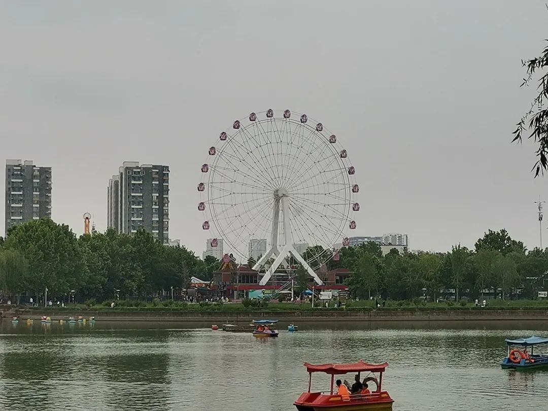 来石家庄第一站,我骑了个共享电动车来到水上公园。据说这是很多石家庄人童年的回忆,水上公园里有游乐场,还有个巨大的摩天轮,石家庄小孩应该都来这儿玩过吧。