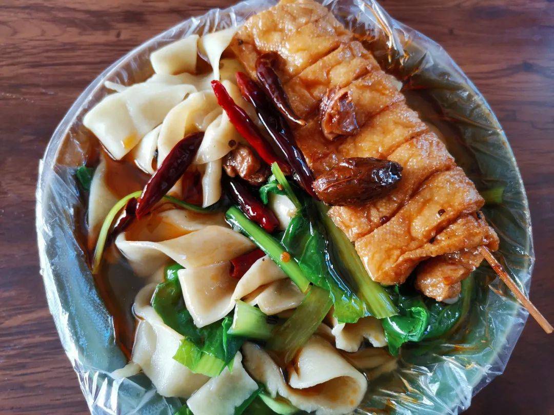 老板娘把做好的板面端了上来,我特意叮嘱少放辣椒,但还是看起来红红的。大碗加豆干,才10块钱,物价挺亲民。我全部吃完,感觉这个面跟河南的烩面片有点相似,但它主要靠红油调味,重油重盐,吃起来比较油,总体来说味道还不错。