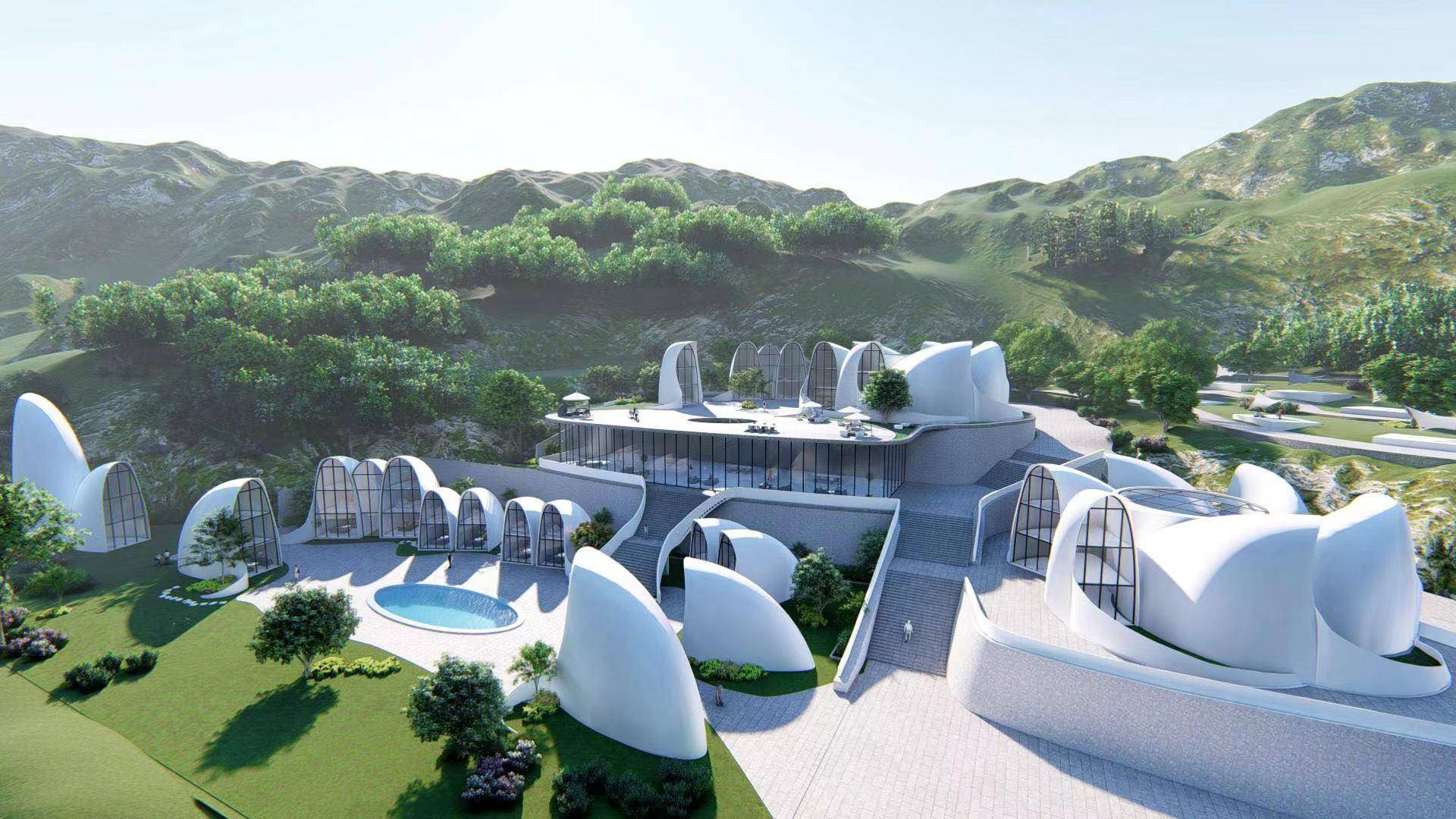 在建的重渡沟示范区北乡村秘境花园民宿集群效果图