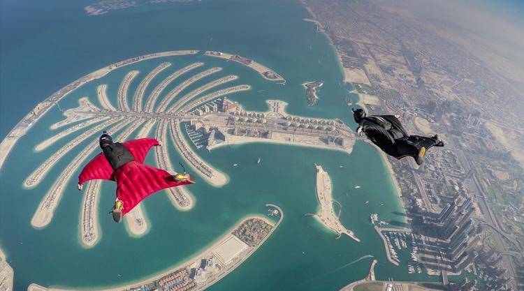 迪拜周围黄沙千里,地形开阔,气候晴朗,为了鼓励极限运动产业发展当地还设立了专门的管理俱乐部、专业的气象监控和预报机构、所有飞行必须有安全人员全程跟踪。