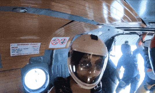 来自北京的24岁大四女生小刘登上了一架商用直升机,按照计划,她将会从2500米左右的高空跳下展开翼装飞行。