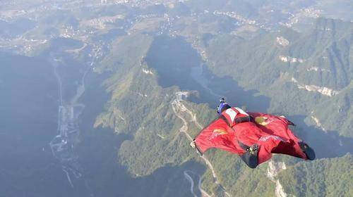 2011年,美国人杰布·克里斯从3000米高空跳下,身着翼装成功飞越130多米高、57米宽的天门山标志性景观“天门洞”,这一如同穿针般的高难度动作使得天门山在翼装飞行界名声大噪。