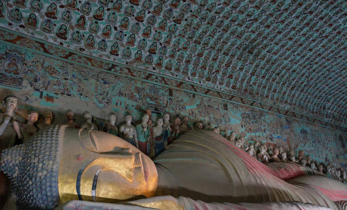 敦煌莫高窟始建于16个王朝的前秦时期,距今已有1600多年的历史。它是中国最重要的佛教艺术遗址之一,也是世界文化遗产。这里保存了大约 50,000 幅壁画、3,000 多件彩塑和近千件书法碑刻等文化遗产。