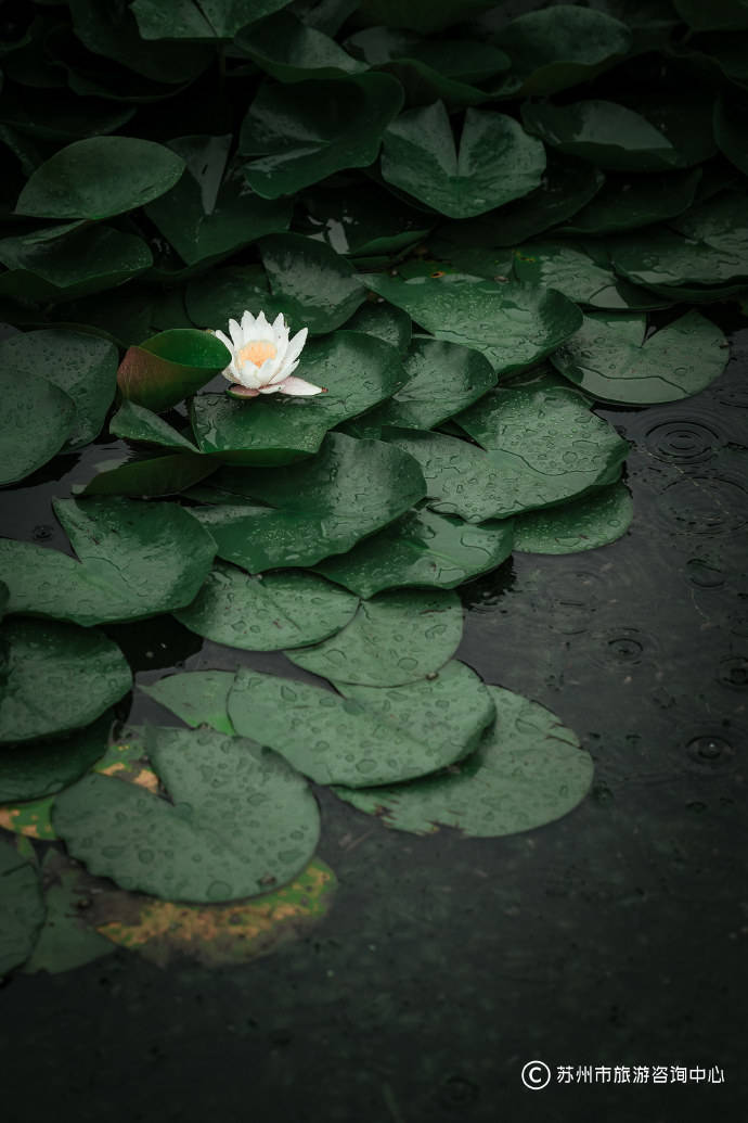 与沧浪亭一路之隔的可园里,那一池睡莲夏荷都是为梅雨而生的,滴滴答答的雨水,如珠帘般掉落在绿荷上,花叶沾染了层层水汽,颜色也愈发清晰透亮。