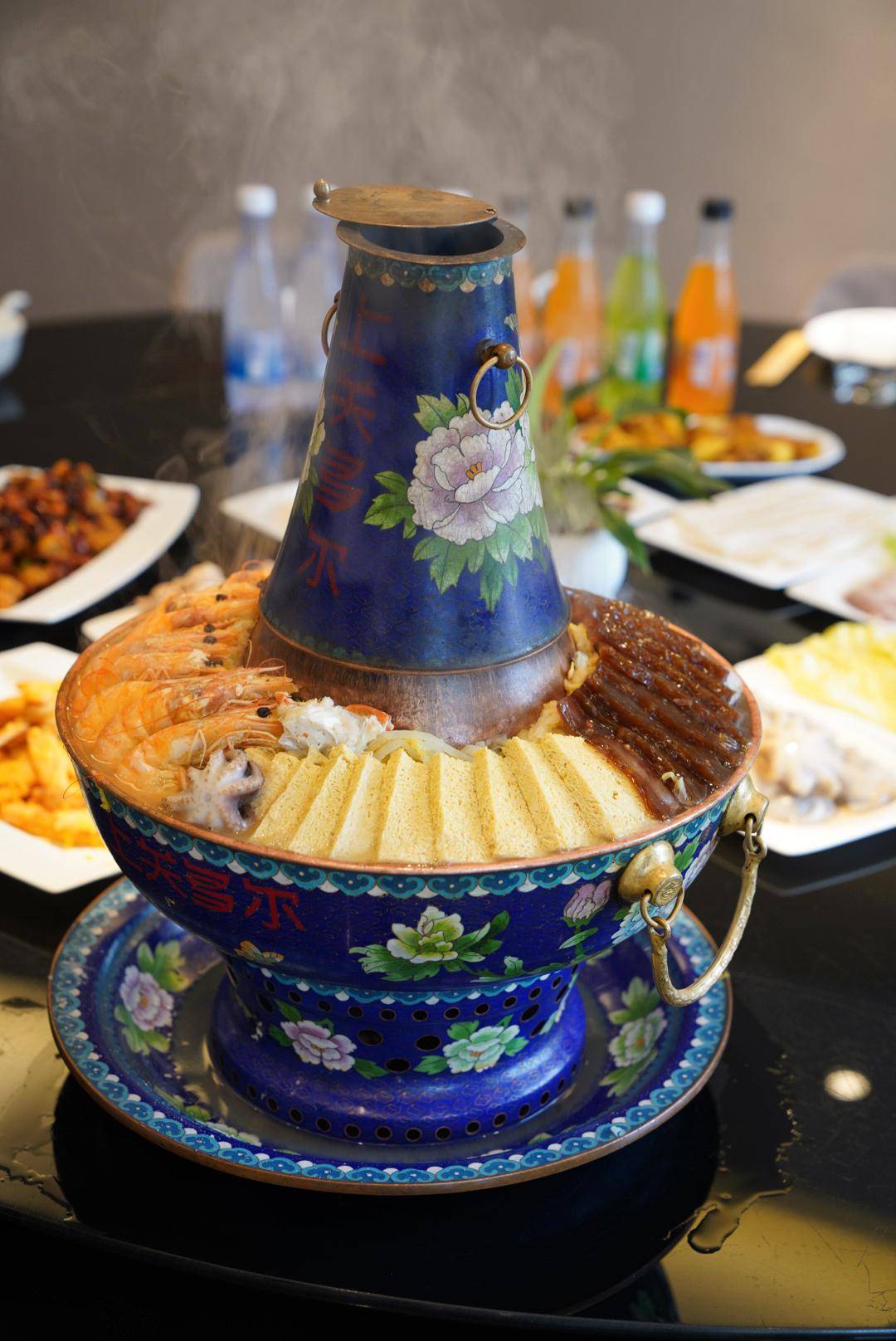 来秦皇岛天下第一关山海关,必须要吃一顿地道的浑锅。这是清军入关带来的行军美食,曾经在物质匮乏年代,当地老百姓只有过年才能吃到,如今越做越丰富,下五花、肉丸、酸菜、鸡块、八爪鱼、螃蟹、冻豆腐、焖子、对虾、海米、排骨被码放得整整齐齐,香醇浓郁的鸡汤打底,冒着腾腾热气的景泰蓝火锅。蘸料也相当丰富讲究,麻酱、腐乳、韭菜花、辣酱、糖蒜、香菜末等等蘸料通通配齐,红红绿绿的很喜。记得一定要配上这酥脆的当地烧饼,再尝尝当地特色的桲椤饼,据说是戚家军发明的美食。