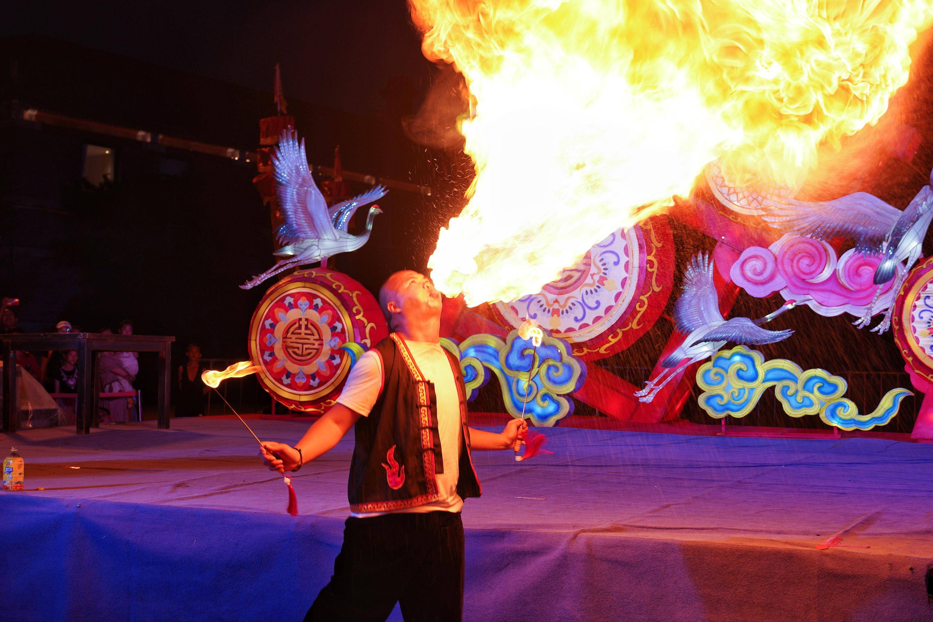 每天19:50——20:10,古城特别邀请吴桥杂技团的演员们,为大家带来精彩绝伦的杂技秀,杂技演员们带来精彩绝伦的独轮自行车、呼啦圈、喷火、舞中幡表演,技艺超群,让人拍案叫绝!节假日和每周六日的18:30—18:50、19:10—19:30,天下第一关前的广场主舞台上有国潮乐队现场演出,听觉与视觉冲击力爆表,彻底点燃现场气氛。
