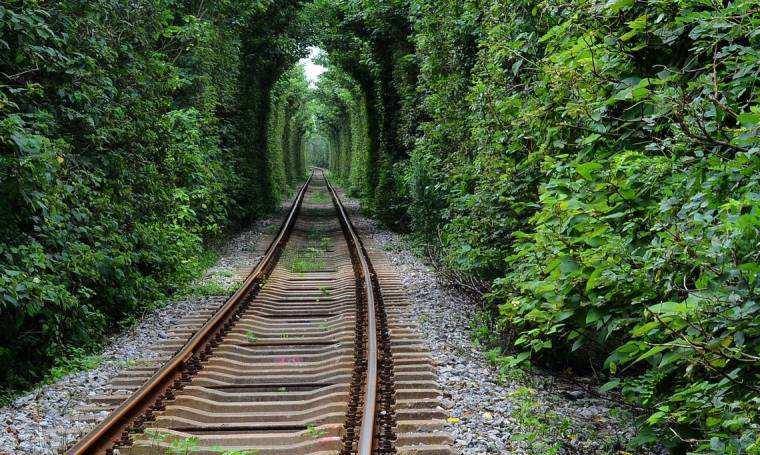 这个地方并不是那些开发商专门建造出来的爱情隧道其实就是自然形成的,在这个地方曾经有一段铁路,但是这段铁路后来废弃便不用了,没有想到这个铁路两旁竟然长满了非常翠绿浓郁的树木。八中段铁路都给包围了起来,看起来非常的美丽。