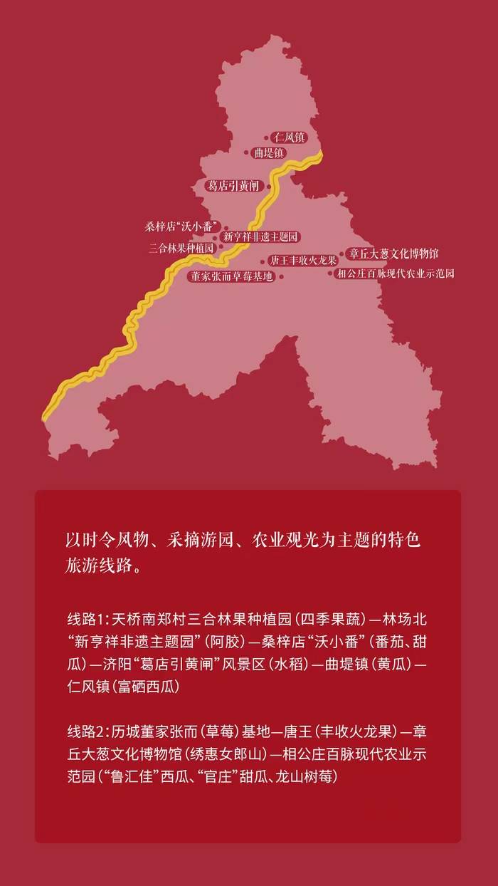 黄河风物——以时令风物、采摘游园、农业观光为主题的特色游线2条。