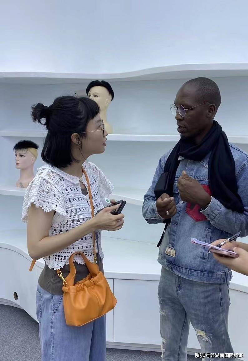 在邵阳一家假发制品公司,记者团成员一进到成品展示区就对各种样式的假发爱不释手,用手触摸感受各种假发材质,不停试戴各种款式假发。湖南国际频道的双语博主Jenny作为非洲媒体记者团此行的翻译,临时客串起了“带货主播”,为记者团成员询价比价。来自纳米比亚国家广播电视台的塞莉玛·海诺克在买下心仪的假发后迫不及待地将其戴上,瞬间换了个新发型。来自喀麦隆的阿兰·马兹达更是与邵阳的假发企业负责人谈起了合作,希望共同开拓家乡的假发市场。